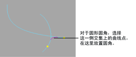 - 在每条曲线上选择一个曲线点以指定圆角的开始点和结束点。