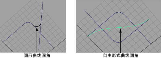 可以创建圆形或自由形式圆角。自由形式圆角提供更多的位置和形状控制。