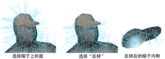 在多边形面上反转面法线,将在面的“前”和“后”朝向方向之间切换。顶点法线通常从面法线进行计算,所以也会受到影响。