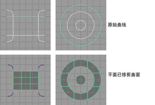 尽管平面曲面可包括裁切区域或洞,但定义洞的曲线必须与主曲面共面。