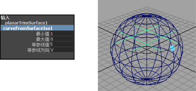 使用“部分”(Partial),您可以在平面曲面中使用“显示操纵器工具”(Show Manipulator Tool)显示操纵器,并沿输入曲线部分编辑结果平面曲面。单击输入曲线或“通道盒”(Channel Box)中的等参线的标题,可显示该选项。