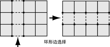 循环边是由其共享顶点按顺序连接的多边形边的路径。例如,如果选择球体上的一条水平边,循环边选择将尝试沿球体上的相同纬度线选择所有水平边。请参见选择循环边。