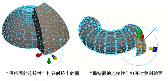 在挤出、提取或复制面时启用或禁用“保持面的连接性”(Keep Faces Together),以指定要保留每个单独面的边还是只沿着当前选择的边界边。