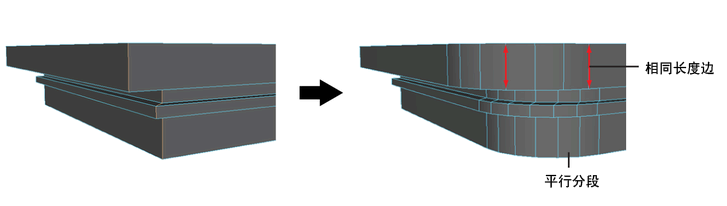 在任意网格上执行倒角操作将产生可预测的结果。在以下示例中,多个角边为倒角。所有的倒角边长度都相等,并且新的线段均平行。