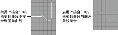 将已修剪的曲线接合到圆角曲线,从而创建单条曲线。仅当“修剪”(Trim)处于启用状态时可用。