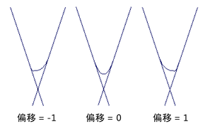 控制圆角曲线是否在一条曲线或另一条曲线的方向上进行包裹。值 1 会将圆角曲线朝向一条曲线的方向进行包裹;值 -1 会朝向另一条曲线。值 0 会将圆角曲线放置于两条曲线的正中间。(可以在“属性编辑器”(Attribute Editor)而并非选项窗口中使用小于 0 的值。)