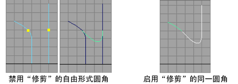 仅保持流向圆角曲线端点的原始曲线的部分。将删除其他部分。