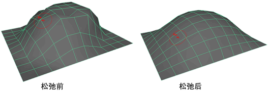 可以在凹凸上绘制来松弛大多数位置以外的曲面功能。与平滑不同,松弛仅通过平均分布最大曲面异常,从而保持总体形状来工作。