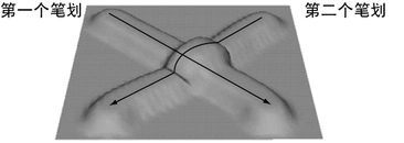 在本示例中,两个笔划都将曲面升高到最大置换距离,但不超过该距离。