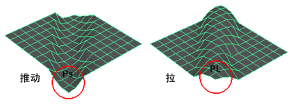 可以在工具形状中向可配置的方向推动或拉动网格。