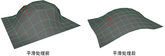 可以在凹凸上绘制来使其平滑。通过平均分布笔刷半径中所有功能和所有其他附近功能的位置,该平滑操作正常工作。