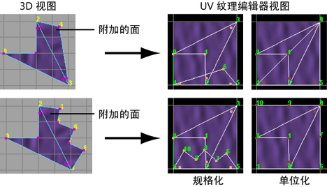 指定如何为附加的多边形创建 UV 纹理坐标 (UV)。有下列三种设置:“无”(None)、“规格化”(Normalize)和“单位化”(Unitize)。