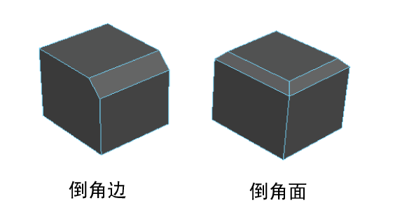 倒角会将选定的每条边展开为一个新面,为多边形网格的边添加圆角。请参见