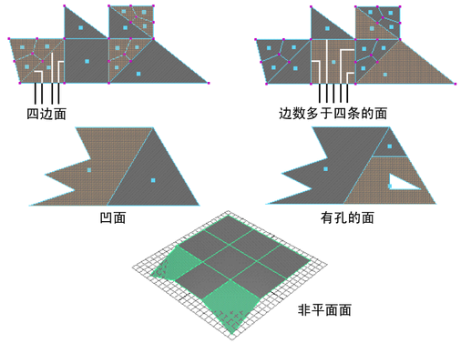 以下插图显示了多边形面可能会遇到的各种问题。