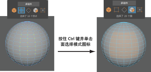 在建模工具包中,按住 Ctrl 键并单击选择模式图标。