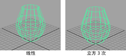 “曲面次数”(Surface Degree)选项决定了是否使用线性(次数为 1)或立方(次数为 3)几何体创建曲面的 V 参数方向。