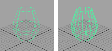 “分段”(Segments)值决定了创建旋转曲面使用的截面数量。对于 360 度扫描,六个或八个截面通常已经足够。在下图中,左侧曲面显示了使用八个分段的旋转。右侧则包含 20 个分段。