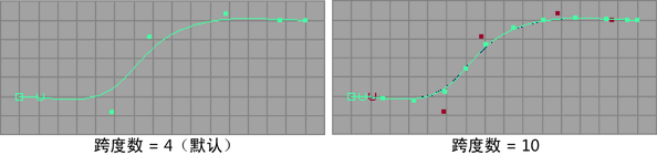 如果启用“多点结”(Multiple Knots),则曲线会到达末端 CV,使其更易于控制曲线边界和相关切线。