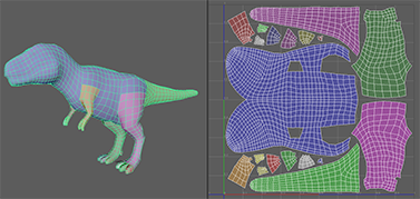 以粗体显示当前组件选择中连接的 UV 壳边。有助于查看包含多个 UV 壳的模型以了解壳的排列位置。适用于所有组件模式。此模式的热键为 8。有关详细信息,请参见显示 UV 壳上连接的边。