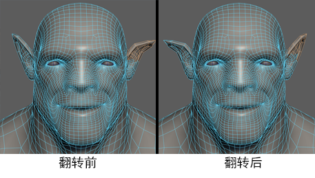 “网格 > 翻转”(Mesh > Flip)交换组件的位置。