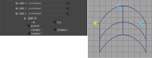 如果“自动反转”(Auto Reverse)处于禁用状态,将使用曲线的当前状态,这可能会产生扭曲的曲面。启用后,曲线将自动反转。