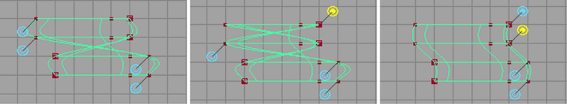 如果“自动反转”(Auto Reverse)处于禁用状态,可以在必要时使用“显示操纵器工具”(Show Manipulator Tool)反转原始剖面曲线的曲线方向。只要单击操纵器控制柄就可反转曲线方向。