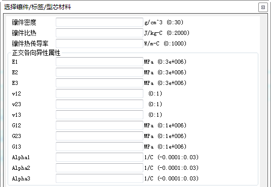 相对于主轴测量了正交各向异性材料的机械属性。E1 为第一主方向的弹性模量;Alpha1 为第一主方向的热膨胀系数 (CTE)。