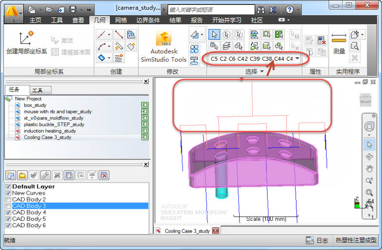 会为曲线指定识别标签“C”。每条曲线都有一个唯一的标识(由字母 C 和其后面的数字组成)。当您选择曲线时,标识符将列在选择列表中。