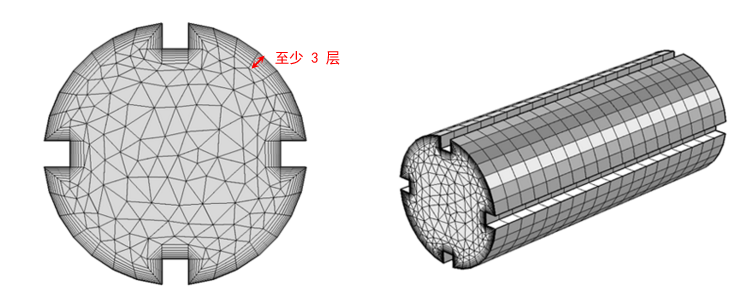 “3D 管道网格”工具会自动使用管道表面上的增强层来捕获此区域中的热传导。