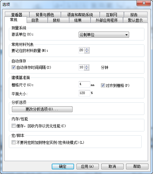 ”选项卡用于设置模型中各个实体的默认显示属性,并且仅在工程中有打开的方案时才可用。可用的选项将在下面进行介绍。