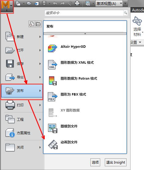 要将结果发布为动画,请选择该结果、从“应用程序”菜单中选择“发布”,然后单击“动画到文件”。从三个选项中选择适当的文件格式。