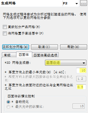 - 厚度方向的单元数的默认值已从 6 更改为 10。