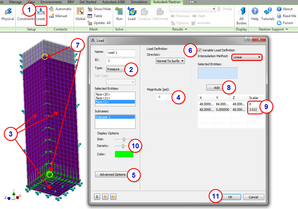 Advanced Options to expand the dialog so the Variable Load Definition is visible.