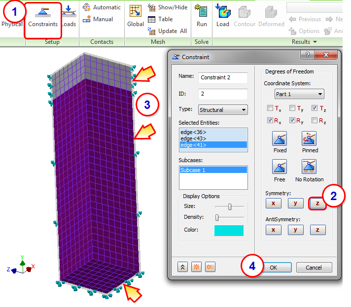 In this step, we will assign Z symmetry to the symmetry edges in the XY plane.