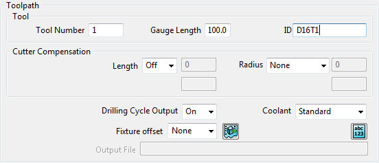 刀具编号 - 输入刀具路径使用的刀具编号。默认情况下,这与“刀具”对话框中刀尖选项卡上的“刀具编号”相同。这会添加到切削文件中。