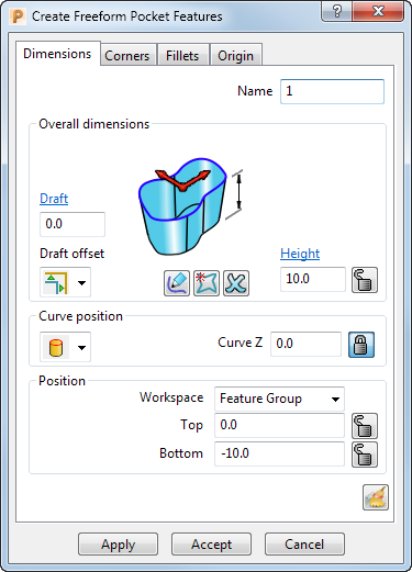 底部 - 在特征底部设置轮廓曲线。曲线 Z - 输入值以指定轮廓曲线沿 Z 轴的高度。如果指定了“拔模角”,则系统会通过从此高度偏移曲线来应用拔模角。