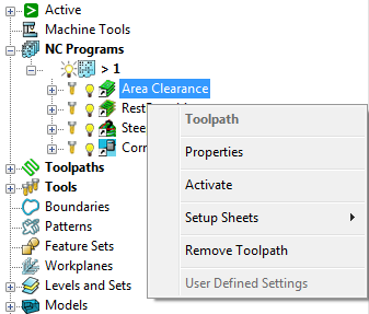 要显示此菜单,请在资源管理器中右键单击包括在 NC 程序中的刀具路径。