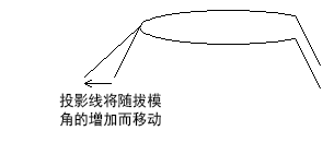 系统将在复合曲线的末端绘制投影线,以标记拔模面的拔模角。