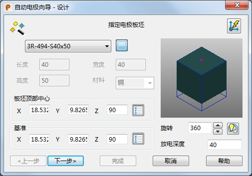 选择标准板坯后,其尺寸会自动增加到该向导中,并且您无法更改这些值。