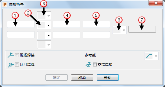 使用该对话框中的选项可构建焊接符号。