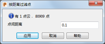 单击“点云工具”选项卡 >“选择”面板 >“过滤点”以显示“按距离过滤点”对话框: