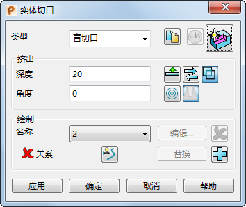 您可以使用线框对象将形状剪切为实体。PowerShape 可以通过线框对象创建挤出实体,以及从实体中减去对象,或使这些对象与实体相交。
