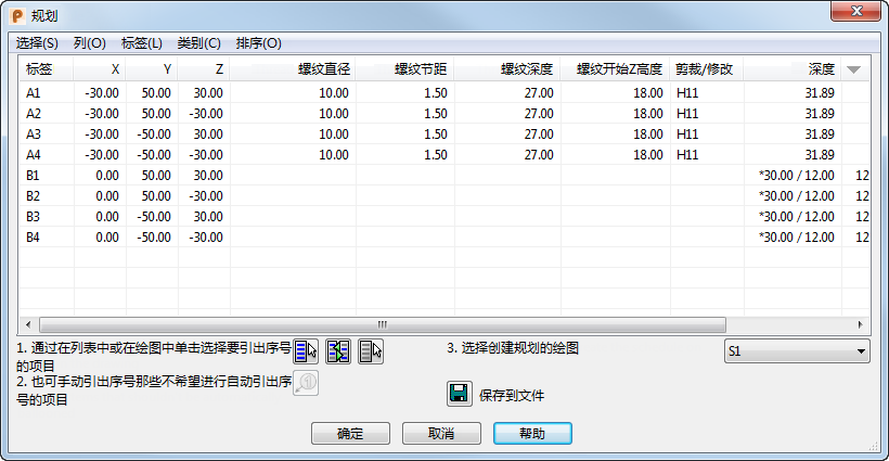 记录增加列来显示孔的“螺纹顶部直径”的宏的步骤: