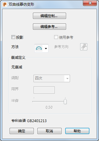 此页面上的其余选项显示在“曲面摹仿变形”对话框 -“双曲线”上。