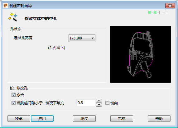 预览 - 使用已选的选项预览已选孔的修复情况。