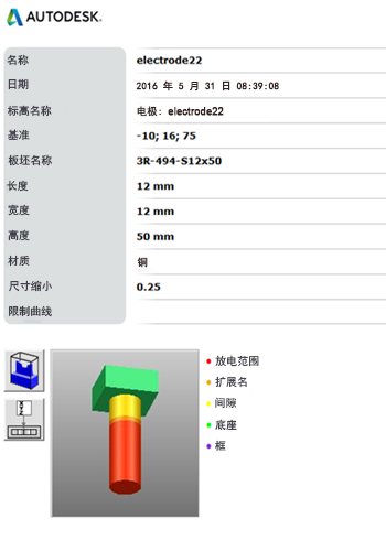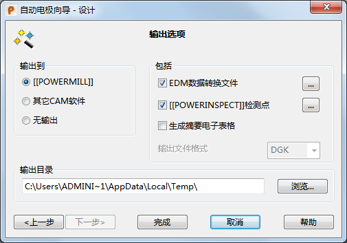 - 选择“EDM 数据转换文件”可输出加工电极所需的 EDM 设置文件。默认情况下,该选项是被选定的。