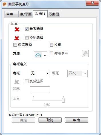 “曲面摹仿变形”对话框 - 双曲线