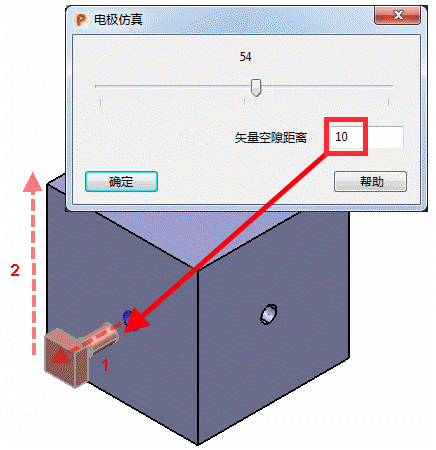 电极放电运动的仿真反映了您在向导的第一页上指定的提取矢量。