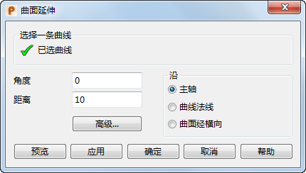 高级 - 显示延长段对话框。可以使用此对话框将复合曲线分割为段。然后,您可以为每个段指定延长方向。