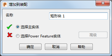 确定 - 注册部件定义,关闭对话框,并将部件增加到装配中。
